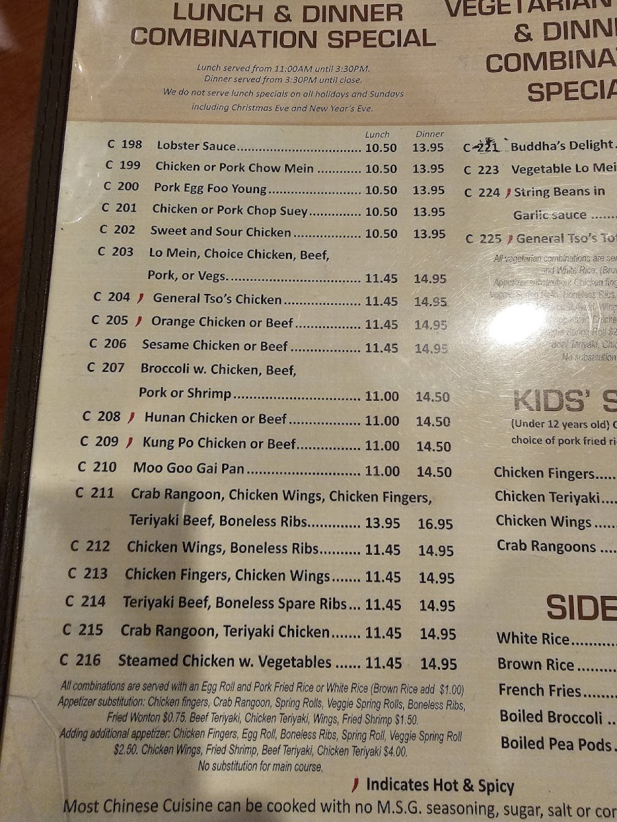 “ Stephen and I went here for dinner and thought the food was reminiscent of days gone by or from our childhood experiences. We ordered Egg Rolls, a large bowl of Hot and Sour soup, and MooShu Chicken to share and it was plenty of food for two including a doggie bag to take back to our hotel. Certainly it would have been better if we had gone earlier instead of at closing, but overall we liked it. ”
